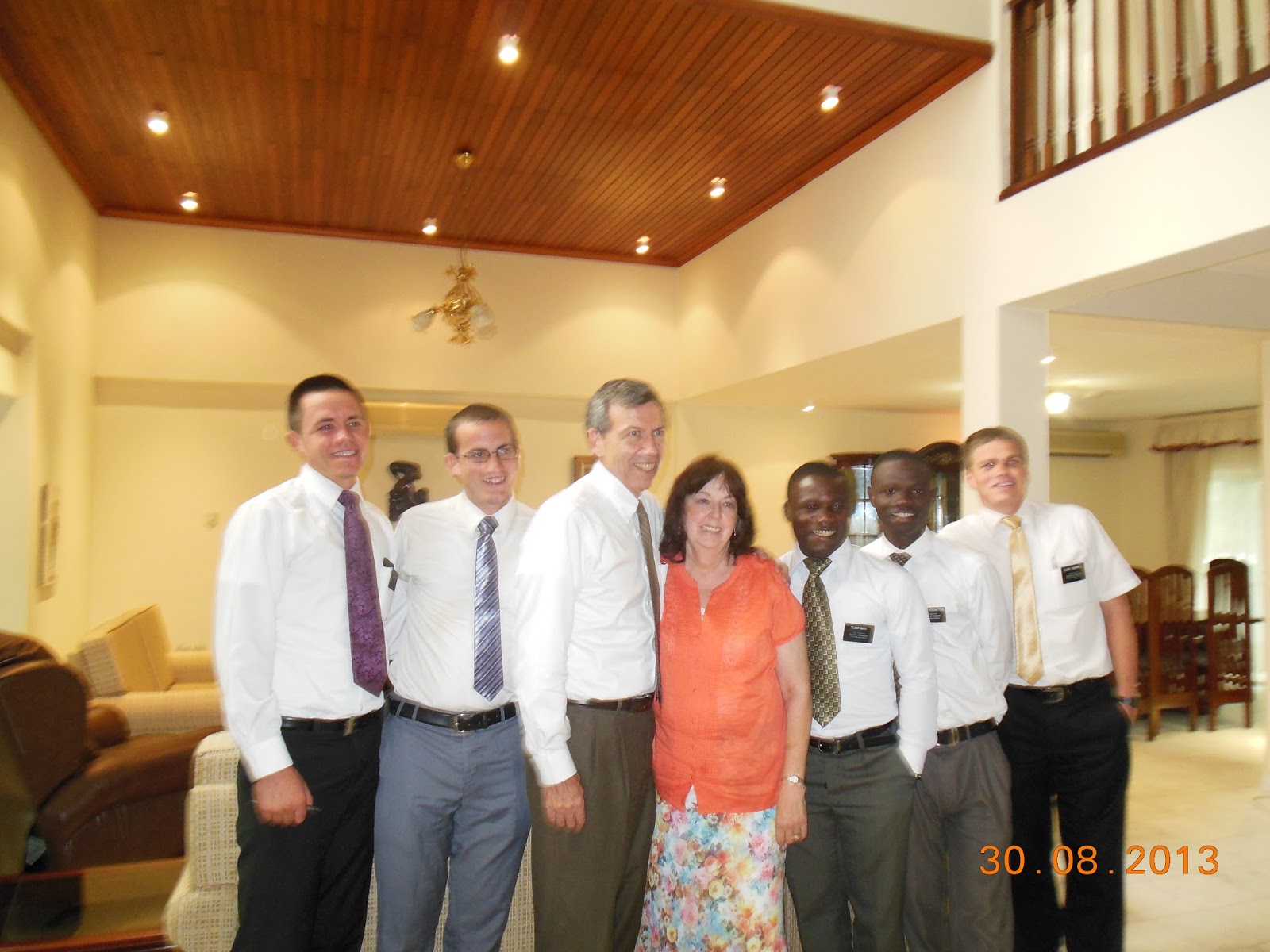 This week we had one of our missionaries go home to Nigeria, so we had a brunch for him after we all went to the Temple. Elder Onyo is standing right next to Sister Hill. the others are our favorite missionaries (because we know them the best) our AP's and Office Elders Elder Christensen (yes he is from Shelly where some of our other favorite Christensens are from) Elder Asay and Elder Keremateng and Elder Thornhill.